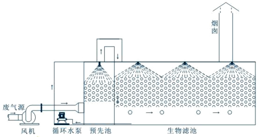 生物過濾工藝流程立面圖如下: